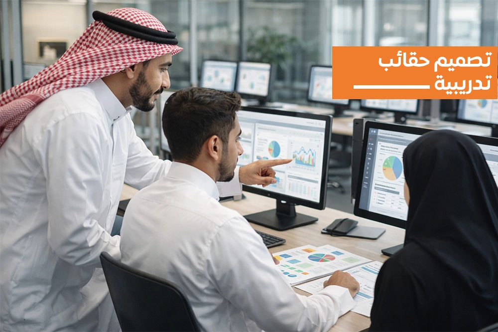 لا نبدأ بالكتابة قبل أن نفهم. تنطلق عملية تصميم الحقيبة التدريبية لدينا من مرحلة تحليل معمّق لاحتياجات الجهة، والجمهور المستهدف، والأهداف التعليمية المرجوة. نسأل: ما الذي يجب أن يعرفه المتدرب؟ وما الذي يجب أن يكون قادراً على فعله عند انتهاء البرنامج؟ ومن أي نقطة يبدأ؟ هذه الأسئلة تُحدد هيكل الحقيبة بأكملها، وتضمن أن يكون كل عنصر فيها موجَّهاً نحو هدف واضح وقابل للقياس.